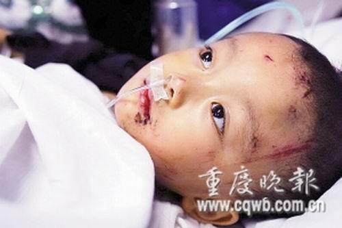 昨天(10月29日),記者在重慶市第六人民醫(yī)院見到了病床上這個叫孫浩的3歲男孩!拔也煌,我想媽媽了。”孫浩說到這里流下了眼淚。據(jù)了解,從孩子出事到現(xiàn)在,其父母一直沒有出現(xiàn),一直是干媽守在醫(yī)院。