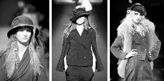 中性風(fēng)格的簡約版淺口禮帽是今冬最熱門之選,很“百搭”,幾乎可以搭配不同風(fēng)格的時裝。和呢子大衣、小西服等線條硬朗的服裝在一起,帥氣颯爽;和女性風(fēng)格濃郁的雪紡裙、短裙等搭配,刻意拉大的反差也很吸引眼球,最好配上可愛感十足的彩襪,更是有另一番的風(fēng)情。 (巫倩姿)