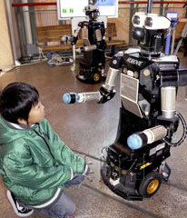 據(jù)日本共同社報(bào)道,原來(lái)這是國(guó)際電氣通信基礎(chǔ)技術(shù)研究所(ATR,京都府精華町)等單位開(kāi)展的一項(xiàng)機(jī)器人試驗(yàn)項(xiàng)目。身高114厘米的“Robovie-II”機(jī)器人擅長(zhǎng)“察言觀色”,對(duì)于猶豫不定的客人,它會(huì)一邊招手一邊接近客人,詢問(wèn)“需要幫忙嗎?”,隨后用聲音或動(dòng)作帶客人前往想去的地方。