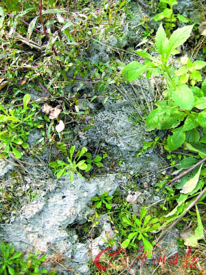 昨日,記者來到此次遭受野豬危害后農(nóng)作物連片失收的高明區(qū)更合鎮(zhèn)澤河村。記者看到,在該村靠近高明深步水庫附近的山邊番薯地和粉葛地里,到處布滿了疑似野豬的腳印。這些腳印大多呈凹陷狀,一畝地多達數(shù)十個,而且還有拱食的痕跡。如今,一些田地里再也看不到番薯或藤苗,粉葛地、芋頭地像被翻過一樣,葛藤已全部干枯。