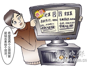 在帖子中,馬將兩名欠債同窗的生活相片、真實名字、籍貫、手機號碼、QQ號都公之于眾,并公布了對方借錢不還的詳細經(jīng)過。馬以“愿負法律責任”,來保證帖子中的內(nèi)容的真實性。他說:如果欠債者看見帖子后,告自己侵犯名譽權(quán),自己賠錢也不后悔發(fā)帖。