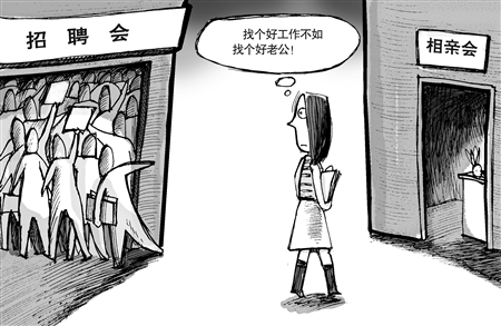 受金融危機影響,今年高校畢業(yè)生的就業(yè)壓力比較沉重,“男靠家,女靠嫁”、“找個好工作不如找個好老公”的觀念開始在高校部分女生中出現(xiàn),婚姻成為不少女生的另一條“退路”。在征婚時,有一定的經(jīng)濟基礎和穩(wěn)定收入成為她們的首要條件。