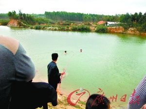 水塘的水深約10米,黃巨在水中抓住黃佳億后,奮力把他往岸上推,岸上的同伴見狀,趕忙合力將被推到岸邊的黃佳億拉了上來,并忙將一條長竹棍伸給水中的黃巨,可因他當(dāng)時已筋疲力盡,最終還是沉了下去……