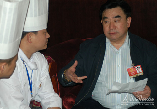 全國人大代表、湘菜大師許菊云與酒店大廚在進(jìn)行交流。人民網(wǎng)記者 李昉 攝 人民網(wǎng)北京3月3日電 (記者 李昉) 食品安全事故的發(fā)生,在一定程度上對消費者造成恐慌,讓民眾對食品安全產(chǎn)生信任危機(jī),這也成為了今年兩會廣泛關(guān)注的話題之一。那么,如何才能堵住食品安全生產(chǎn)漏洞呢?全國人大代表、湘菜大師許菊云建議嚴(yán)把源頭、餐桌、意識三道關(guān)。