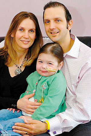 據(jù)英國《每日郵報》20日報道,現(xiàn)年5歲的英國女孩杰斯敏·米爾扎日前創(chuàng)造了醫(yī)學(xué)史上的奇跡,因為她先后移植了爸爸的肝和媽媽的腎,成為英國第一例由父母共捐器官救活的孩子。目前,小杰斯敏恢復(fù)良好,已經(jīng)重返學(xué)校了。