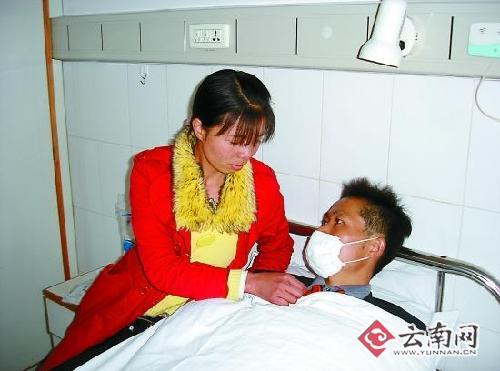 這名欲賣腎救夫的女子,名叫管順蘭,今年27歲,來自大姚縣龍街鄉(xiāng)五福村。此時,她的丈夫陳貴平正躺在州醫(yī)院住院部血液科的病床上。因?yàn)榛忌狭寺粤<?xì)胞白血病,亟待籌資15萬元手術(shù)費(fèi)和與他血型相符的造血干細(xì)胞,以挽救他的生命。