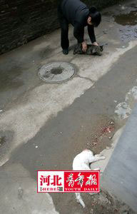 從23日晚上開始,陸續(xù)有石市范東宿舍的居民被橫在一棟單元樓門口的貓尸嚇住,墊著報紙的貓頭不久也被人們發(fā)現(xiàn)。驚恐之余,居民們群情激憤,“殺貓兇手”也引發(fā)人們的種種猜想。
