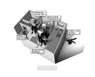 跳樓時(shí),劉某身上穿了一件棉毛衫和一條春秋褲,明顯是經(jīng)過了一夜的思考才做的決定!八丶业臅r(shí)候還吃了燒烤的?蛷d左邊的那間臥室還被火燒了,孩子死在衛(wèi)生間里面,穿的粉紅皮鞋,身體在便池里面!睋(jù)這位知情人士透露,現(xiàn)場(chǎng)還有兩間臥室沒有被火燒,分別放著羅某和其父親的尸首。羅某全身赤裸,趴在床頭邊,紅色內(nèi)褲被脫至大腿兩側(cè),而羅某的父親在另外一間臥室平躺,頭朝門外,身上多處刀傷,滿地鮮血……至于劉某自殺前為何要將另外一間臥室點(diǎn)燃不得而知,遺書中沒有交代。(記者高洋攝影華小峰)