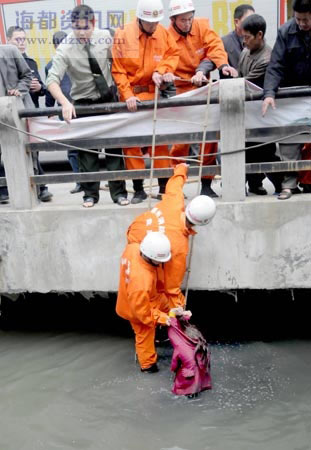 消防官兵趕來后,放下皮劃艇劃向落水女子?蛇@名女子卻胡亂地掙扎著,嘴里說著“你們不要救我,讓我死”之類的話。岸上的警察也安慰她,好不容易才讓她平靜下來。12時50分許,消防人員終于把她拽上了岸。隨后,該女子被送往福州總院救治。