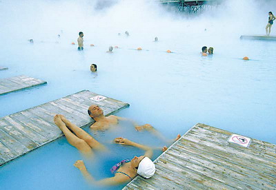 冰島人喜歡露天游泳,當然是在溫泉里游。大多數(shù)冰島人出生沒幾個月,就被父母帶到溫泉學游泳。露天游泳池是冰島最熱門的社交場所。人們在這里會碰到政客、企業(yè)家和藝術(shù)家等。人們脫去正裝只穿泳衣時,沒有職業(yè)和身份的區(qū)別,還原了人的本色,所以無論談正事還是聊天,每個人的心態(tài)都很放松,情感更容易溝通。在冰島,溫泉成了青年男女談戀愛的最佳場所,在露天溫泉池里談戀愛不但可以讓戀人們坦誠相對,而且那熱騰騰的溫泉水還可以為戀人們的感情加溫。記者的冰島朋友格魯克說,“冬天來冰島旅游,泡溫泉浴是一項必備的項目! 格魯克介紹說,冰島溫泉浴不象芬蘭浴那樣冰火兩重天,即桑拿到“透熟”的狀態(tài)就一頭扎進接近零度的冰水中,刺激太大,非常危險。冰島溫泉浴主要是采取逐漸升高溫度進入三個漸進加熱的程序,這對皮膚和心血管都有保護作用。