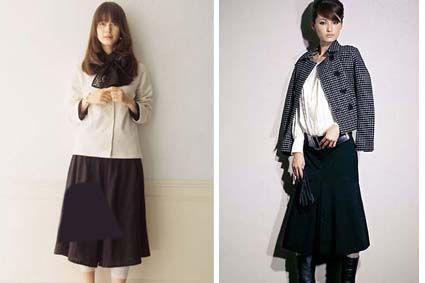 暗色圓領(lǐng)的外套加非褶裙可添加優(yōu)雅感,此裝扮,會(huì)顯得身材纖細(xì),白色襯衫是重點(diǎn)的點(diǎn)綴,給人清爽的印象,整體看起來(lái)也會(huì)不失優(yōu)雅。