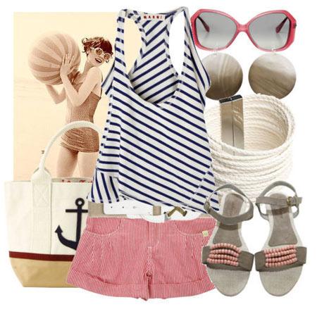 條紋背心和短褲的清爽搭配,去海邊的不錯(cuò)選擇。