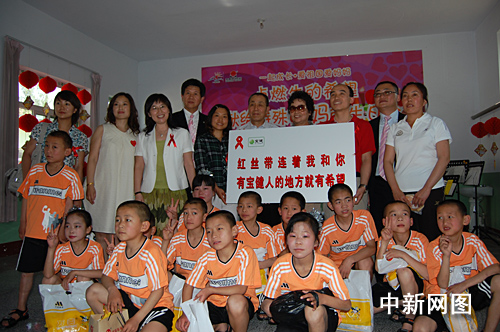 中新網(wǎng)6月3日電 5月30日,我國艾滋病宣傳大使、臨汾紅絲帶學校名譽校長、著名演員濮存昕和青年歌手李丹陽、中國青少年發(fā)展基金會副秘書長汪敏、寶健(中國)日用品有限公司副總裁蔡尚榮、寶健山西臨汾的代理商們等一行走進山西臨汾“綠色港灣”,為紅絲帶小學的艾滋病患兒們送去了節(jié)日的禮物和溫馨的祝福。