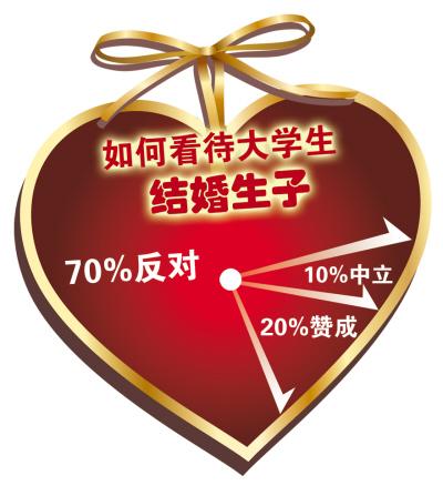 在校大學生結(jié)婚生子,社會是怎么看待的呢?記者昨日通過網(wǎng)絡隨機采訪了30位網(wǎng)友,他們中有公務員、醫(yī)生、教師、大學生、白領(lǐng)、工人、家庭主婦等各類人群。結(jié)果顯示,約7成人反對,2成人贊成,還有1成人持中立態(tài)度。