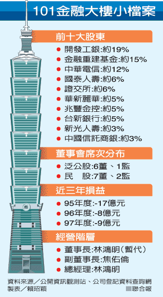 臺北101股東結構中,泛中信集團包括開發(fā)金、中國信托銀行與中國人壽等三家公司,合計持有約二成五股權,中壽與中信銀是否跟進釋股有待觀察。