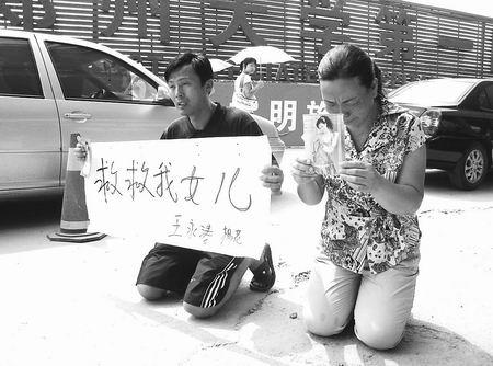 記者迅速趕到鄭州大學(xué)第一附屬醫(yī)院門口,在人行道上,跪著一對(duì)年齡在46歲左右的男女,他們舉著一張白紙,上面寫著“救救我女兒”的字樣,下面寫著他們兩人的名字王永濤和楊花。“你們?yōu)槭裁催@樣做呢?”記者問,聽到記者的問話,兩人同時(shí)流下了淚水,他們拿出了多張女兒的照片:“那是孩子去年照的,現(xiàn)在孩子已變了個(gè)樣子!”記者看到,他們的女兒王曉燕清純漂亮,笑容里充滿著對(duì)未來(lái)人生美好的憧憬。