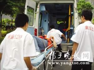傷者被抬上救護(hù)車(chē)。曹盧杰 攝