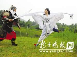 “江湖笑恩怨了,人過(guò)招心不老……”4日下午2點(diǎn),南京江寧區(qū)南山湖景區(qū)儼然成了古裝戲的外景地,3對(duì)年輕男女在此像模像樣地演繹個(gè)性“私人電影劇照”,——將《神話》、《神雕俠侶》、《十面埋伏》等古裝武俠電影中的經(jīng)典場(chǎng)景翻版演繹,用他們的話說(shuō),著實(shí)圓了一回都市人的“成人童話夢(mèng)”。