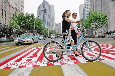 杭州首條愛心斑馬線 陶玉其 董旭明 攝