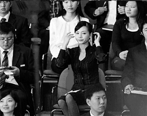 11月16日13時(shí),對(duì)中國進(jìn)行國事訪問的美國總統(tǒng)奧巴馬走進(jìn)上?萍拣^會(huì)場(chǎng),與中國青年展開對(duì)話。但是和奧巴馬的演講相比,現(xiàn)場(chǎng)攝影記者對(duì)一名黑衣女子表現(xiàn)出了更大的興趣。這名美女在現(xiàn)場(chǎng)脫掉紅色外套露出黑色套裝的全過程被記者用相機(jī)記錄下來,被制作成GIF動(dòng)畫上傳網(wǎng)絡(luò),隨后這組動(dòng)畫在網(wǎng)上論壇以及QQ群里廣泛傳播,隨后又有網(wǎng)友將奧巴馬演講視頻中有關(guān)該女子的片段截圖上傳,黑衣美女的美貌和氣質(zhì)迅速傾倒眾人。