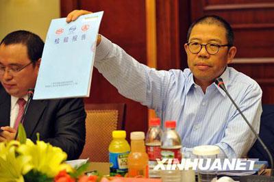 11月30日,農(nóng)夫山泉股份有限公司董事長鐘睒睒在新聞發(fā)布會(huì)上展示有關(guān)部門出具的同批次產(chǎn)品的檢驗(yàn)合格報(bào)告。新華社記者王定昶攝