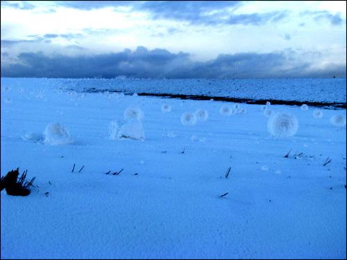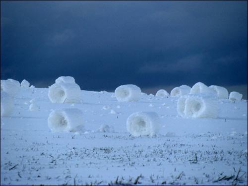 不尋常的自然現(xiàn)象很多人都有所耳聞:乳狀云、逆溫層或幻日弧等等。但是看看下面這些圖片,相信再見多識廣的人也會被嚇一跳:這些東西怎么看都像是巨無霸白色高脂蛋糕。然而事實上,它們是“雪卷”。今年3月份,提姆·特維鮑在美國愛達(dá)荷州大草原上偶爾發(fā)現(xiàn)了這些奇妙景象,并用相機拍攝下來。