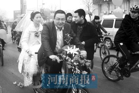 昨日,河南滎陽市民王順強(qiáng)用120輛自行車舉行了一個別開生面的自行車婚禮。