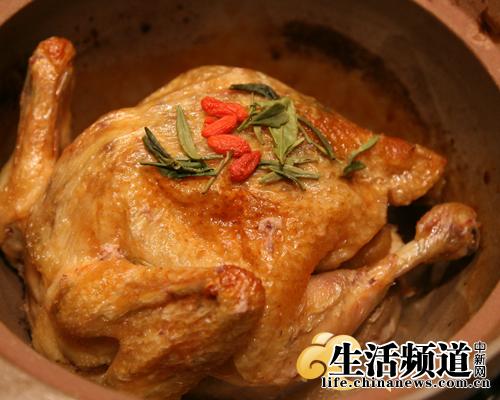 沙鍋盛放,開蓋子,雞香撲鼻而來。淡褐色的雞靜躺,墨綠的幾片茶葉點襯其間。挾一塊嫩白雞肉,細(xì)品,鮮咸香三味并入,一種未盡的余味蕩在口齒之間。這道菜是外婆家創(chuàng)店以來最暢銷也是最有口碑的一道菜。以至于人們都說,到外婆家,不吃龍井茶香雞,就等于白來。