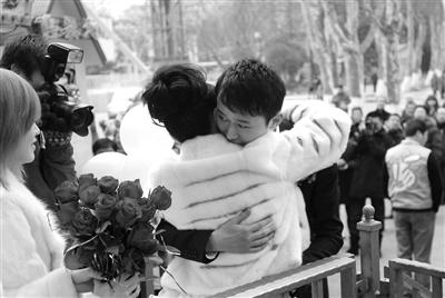 走下旋轉(zhuǎn)木馬后,劉先生手捧玫瑰和戒指,走到代小姐面前,單膝跪地,大聲說:“嫁給我吧!”驚喜交加的新娘激動得連連點頭,兩人緊緊相擁。(如圖)
