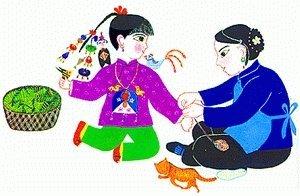 中國古代崇拜五色,以五色為吉祥色。因而,節(jié)日清晨,各家大人起床后第一件大事便是在孩子手腕、腳腕、脖子上拴五色線。系線時(shí),禁忌兒童開口說話。五色線不可任意折斷或丟棄,只能在夏季一場大雨或第一次洗澡時(shí),拋到河里。據(jù)說,戴五色線的兒童可以避開蛇蝎類毒蟲的傷害;扔到河里,意味著讓河水將瘟疫、疾病沖走,兒童由此可以保安康。