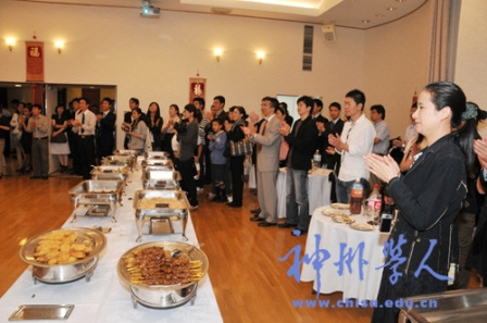 招待會(huì)上,留學(xué)人員載歌載舞表達(dá)著對(duì)祖國(guó)的祝福,每個(gè)人都沉浸在國(guó)慶佳節(jié)的氣氛中,大家品嘗著美味佳肴,談?wù)撝鎳?guó)的發(fā)展變化,構(gòu)思著自己的美好未來(lái)。祖國(guó)的明天更美好——這是大家共同的心愿。