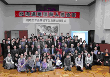 北海道華僑華人聯(lián)合會會長陶惠榮向與會嘉賓匯報了聯(lián)合會一年的工作情況,還進行了留學(xué)生獎學(xué)金、“五好家庭”頒獎和猜謎等活動。(張玥)
