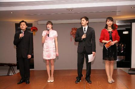 使館教育處王魯新參贊首先給到場(chǎng)的各位嘉賓和所有觀眾拜年并送出虎年的美好祝愿,并回顧了中國(guó)在過(guò)去一年金融危機(jī)時(shí)期經(jīng)濟(jì)持續(xù)發(fā)展的良好勢(shì)頭和在國(guó)際舞臺(tái)上的重要地位,同時(shí)展望了祖國(guó)更美好的2010年,即興用英語(yǔ)做了發(fā)言,在熱烈掌聲后開(kāi)始了文藝演出。