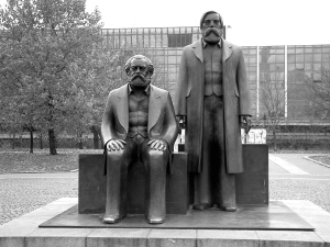 馬恩銅像雕塑,始建于上世紀(jì)七十年代的東德時(shí)期。據(jù)說,關(guān)于馬克思坐著而恩格斯站著的造型構(gòu)思,有兩種解釋,一是馬克思是德國人而恩格斯不是德國人,二是恩格斯是馬克思的戰(zhàn)友和學(xué)生。