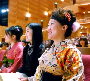 當(dāng)天畢業(yè)的有,經(jīng)濟(jì)學(xué)系的454人和研究生院經(jīng)濟(jì)學(xué)研究科的20人。侯利娟身著和服,與日本同學(xué)一起坐在最前排,以一種神圣的心情,注視著代表所有畢業(yè)生從校長(zhǎng)那里接受學(xué)位的學(xué)生總代表的一舉一動(dòng)。傾聽(tīng)著主席臺(tái)上傳來(lái)的畢業(yè)賀詞,她更加感受到“不能忘記那些一直幫助自己的當(dāng)?shù)厝恕薄?/p>