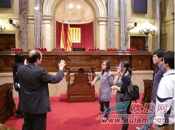 巴塞羅那中國學(xué)生學(xué)者聯(lián)誼會秘書長肖康蕓從一個月前負(fù)責(zé)聯(lián)系組織,該協(xié)會主席黃星星同學(xué)等學(xué)聯(lián)負(fù)責(zé)人與就讀于巴塞羅那各大院校的7名留學(xué)生代表一起參加了這個活動。留學(xué)生們得到進(jìn)入議會參觀的機(jī)會并與議會主席面對面交談。