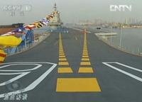 9月25日,我國(guó)第一艘航空母艦“遼寧艦”在中國(guó)船舶重工集團(tuán)公司大連造船廠正式交付海軍。圖為中國(guó)首艘航母機(jī)庫(kù)內(nèi)停放的疑似艦載機(jī)。(央視截圖)