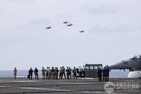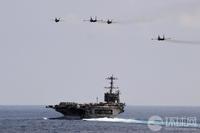 馬來西亞海軍的蘇-30戰(zhàn)機(jī)與美國(guó)海軍的F/A-18戰(zhàn)斗機(jī)組成編隊(duì)從華盛頓號(hào)航母上空飛過