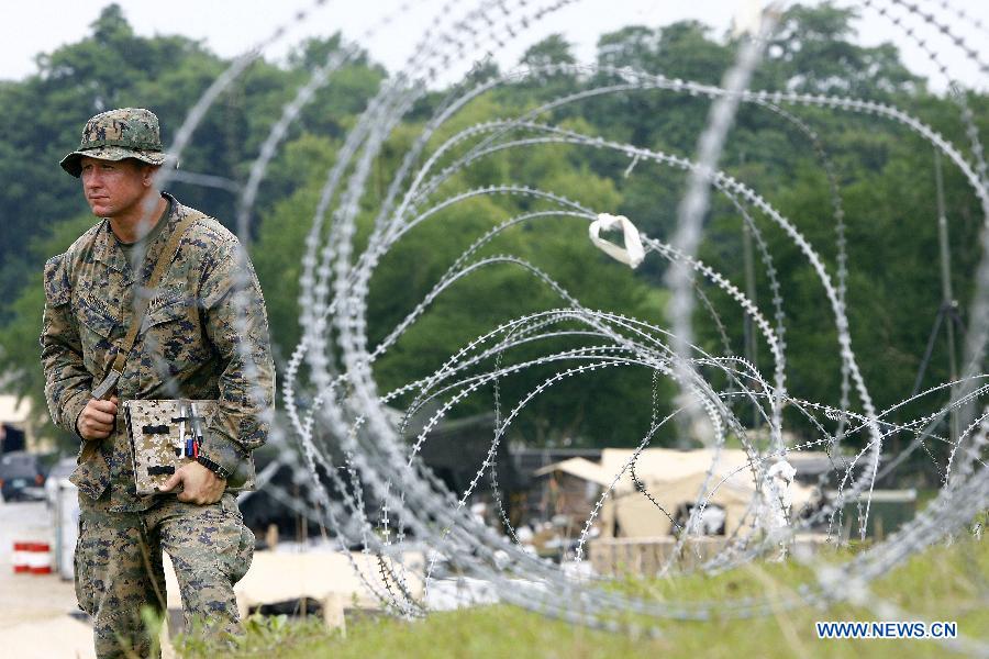 美菲兩棲聯(lián)合軍演第二天,當天來自美國兩極攻擊艦“好人理查德”號上的約120名美國海軍陸戰(zhàn)隊員和約30名菲律賓海軍陸戰(zhàn)隊員來到了菲律賓塔拉省的烏鴉峽谷,參加直升機突襲項目的演習。