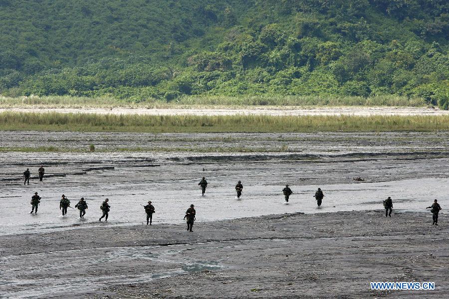 美菲兩棲聯(lián)合軍演第二天,當天來自美國兩極攻擊艦“好人理查德”號上的約120名美國海軍陸戰(zhàn)隊員和約30名菲律賓海軍陸戰(zhàn)隊員來到了菲律賓塔拉省的烏鴉峽谷,參加直升機突襲項目的演習。