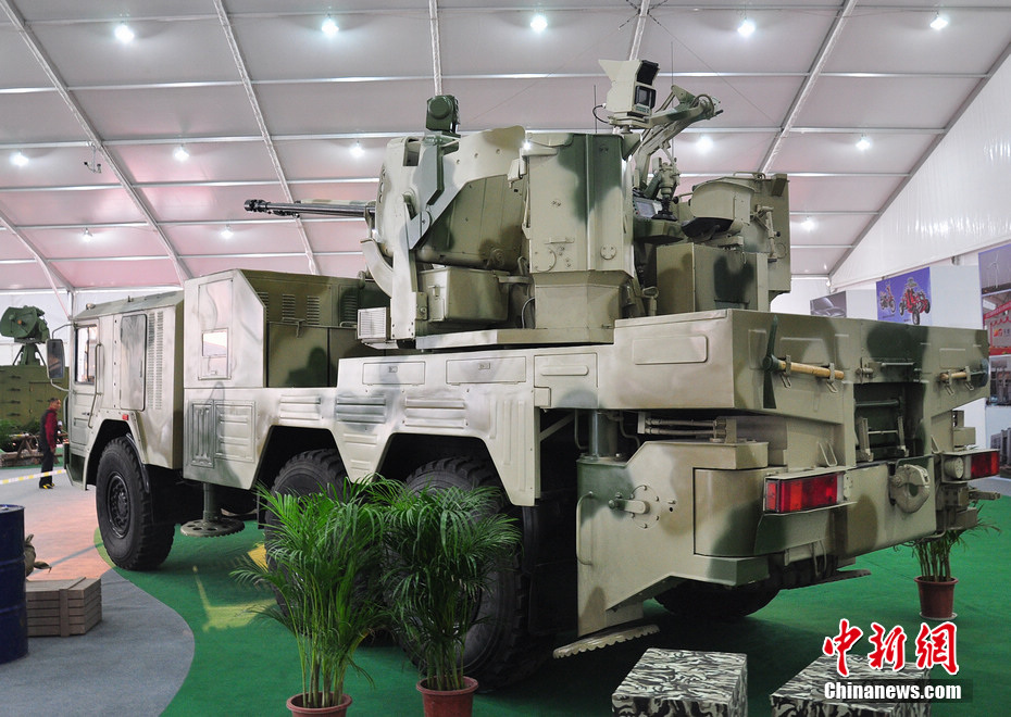 國(guó)產(chǎn)CS/SA1型車(chē)載35毫米高炮亮相珠海航展。陳海峰 攝