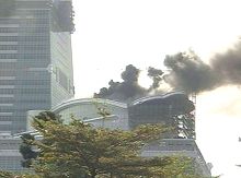 今天早上臺北101金融大樓突然傳出發(fā)生火災(zāi),火苗由大樓間的10層樓上冒出,消防局立即出動高樓云梯車灌救,經(jīng)過約40分鐘,火勢已經(jīng)全部撲滅,