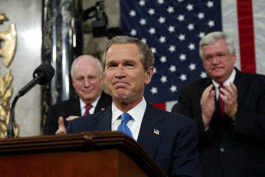 布什在這份國情咨文中還表示,12年前,薩達(dá)姆發(fā)起戰(zhàn)爭(zhēng)并且最終失敗,接受了;饏f(xié)議。在隨后的12年中,他逐漸系統(tǒng)地違反了當(dāng)初的停火協(xié)議。