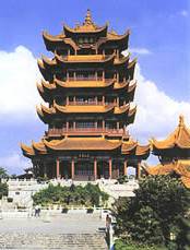 黃鶴樓原址湖北武昌蛇山黃鶴磯頭,始建于三國時期吳黃武二年(公元223年),傳說是為了軍事目的而建,亦有傳說指其原為辛氏開設(shè)的酒店。1957年建長江大橋武昌引橋時,占用黃鶴樓舊址,如今重建的黃鶴樓在距舊址約1千米左右的蛇山峰嶺上。其樓共五層,高50.4米,攢尖頂,層層飛檐,四望如一。在主樓周圍還建有勝象寶塔、碑廊、山門等建筑。整個建筑具有獨(dú)特的民族風(fēng)格。