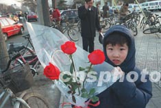 情人節(jié)又到了,北京一位中年男子(打手機(jī)者)攜子前往花市購(gòu)買(mǎi)了玫瑰花,準(zhǔn)備給妻子一個(gè)驚喜。如今,過(guò)西洋“情人節(jié)”不再是年輕人的專(zhuān)利。作者:俞麗偉