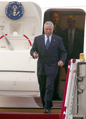 另據(jù)報道,鮑威爾于22日下午搭乘專機(jī)飛抵東京揭開日本、中國和韓國三國的訪問行程。他于當(dāng)天晚上在外務(wù)省飯倉公館先和小泉日相進(jìn)行約四十五分鐘的會談,隨后接著和川口外相會談。