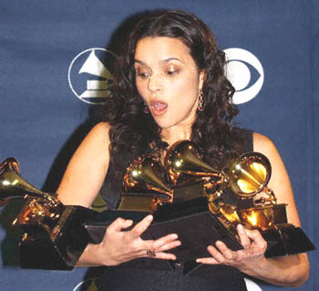 24日第45屆格萊美獎(jiǎng)?lì)C獎(jiǎng)典禮在紐約麥迪遜廣場(chǎng)花園舉行。23歲的女歌手諾拉-瓊斯(Norah Jones)共獲得年度最佳唱片、年度最佳專(zhuān)輯、年度最佳單曲、年度最佳新人、最佳流行女歌手、最佳流行樂(lè)演唱專(zhuān)輯、最佳非古典錄音工程專(zhuān)輯、年度古典制作人八項(xiàng)大獎(jiǎng),成為本次格萊美獎(jiǎng)的最大贏家。