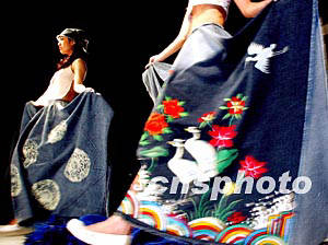 正在北京舉行的時裝周上,一向硬朗的牛仔服飾在韓國設(shè)計師的描畫下展現(xiàn)出絢爛而嫵媚的風(fēng)格。作者:鄭萍萍