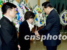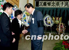 全國(guó)政協(xié)主席賈慶林二十一日在北京八寶山,悼念逝世的前臺(tái)盟中央主席蔡子民先生,并向蔡先生的親屬表示慰問。作者:鄭萍萍
