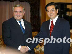 胡錦濤會見拉法蘭 強(qiáng)調(diào)加強(qiáng)與歐盟對話經(jīng)貿(mào)交流